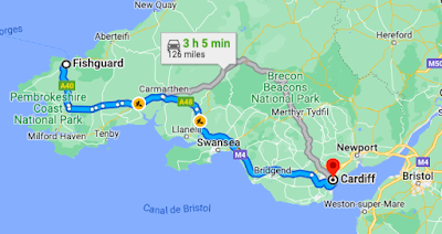 We began our journey to Wales today at 5:30 a.m. It would take us two hours to get to the 7:30 ferry boat in the town of Wexford, Ireland--the only ferry running on this day. The hotel provided us with a light snack for breakfast; we would eat a full breakfast on the ferry boat that would cross the St. George's Channel over four hours to land in Fishguard, Wales. The sea didn't look that rough, but the boat rocked enough that you had to ground yourself and acquire a new set of sea legs to keep from falling.